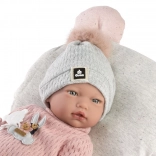 This realistic baby doll will delight every child with its authenticity and pleasant craftsmanship. With a gentle press on the chest, it emits a joyful laugh, stimulating imagination and developing social skills during play. The soft fabric body feels nice to the touch, and the jointed arms and legs allow for easy posing and sitting.