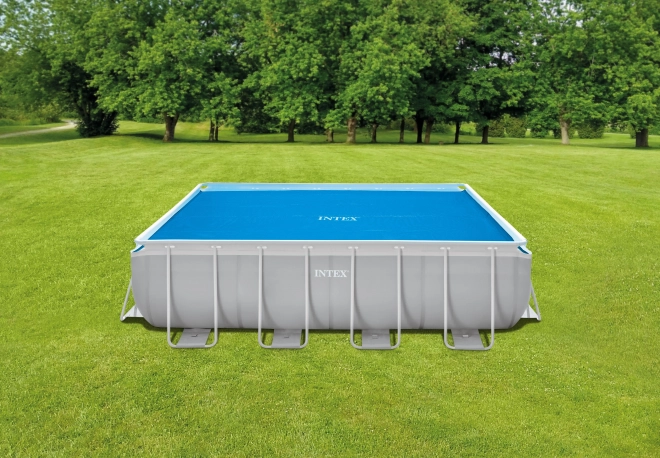 Discover a simple way to extend your swimming season. The Intex solar cover for frame pools measuring 400 × 200 cm uses solar energy to heat the water while acting as thermal insulation overnight. The bubble structure lets sunlight through and reduces heat loss.