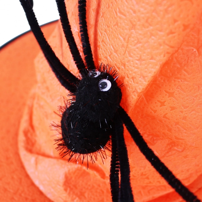 A stylish orange witch hat with black trim and a bold spider is the perfect accessory for Halloween. It gives your costume an authentic, standout look and is great for parties, themed events, and dress-up.