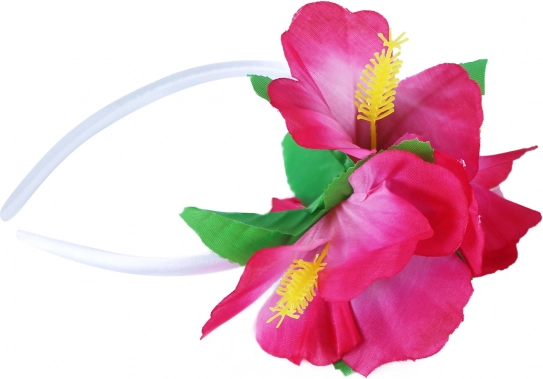 A stylish Hawaii-style headband with 3 colorful flowers that beautifully adorns your hair for carnivals, parties, and summer celebrations. The comfortable white headband is lightweight, easy to put on, and adds a tropical touch to any outfit.