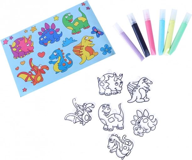 Colorful glitter pens add shine and sparkle to your dinosaur creations. Perfect tool to support creativity.