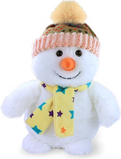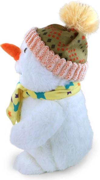 This plush snowman is designed to be pleasant to touch and perfect for cuddling.