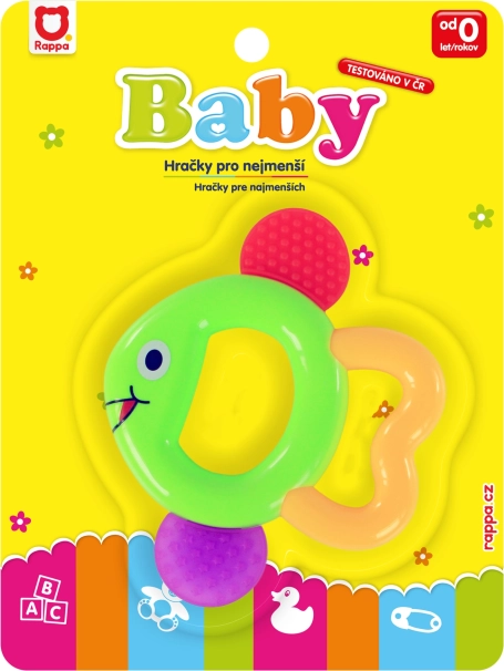 A cheerful fish-shaped rattle and teether will delight every baby. It combines fun rattling with safe teething relief during tooth eruption and helps develop fine motor skills and visual perception.