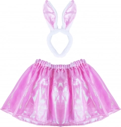 Adorable costume for children aged 3 to 7, including a shiny pink skirt and a headband with pink bunny ears. Ideal for fun events and dress-up play.