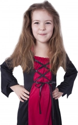 Classic black‑red dress with front lacing and flared sleeves creates an impressive witch look for any themed party. The costume is a great choice for Halloween, carnivals and school performances, and thanks to the universal size S it fits most children aged 4–6.