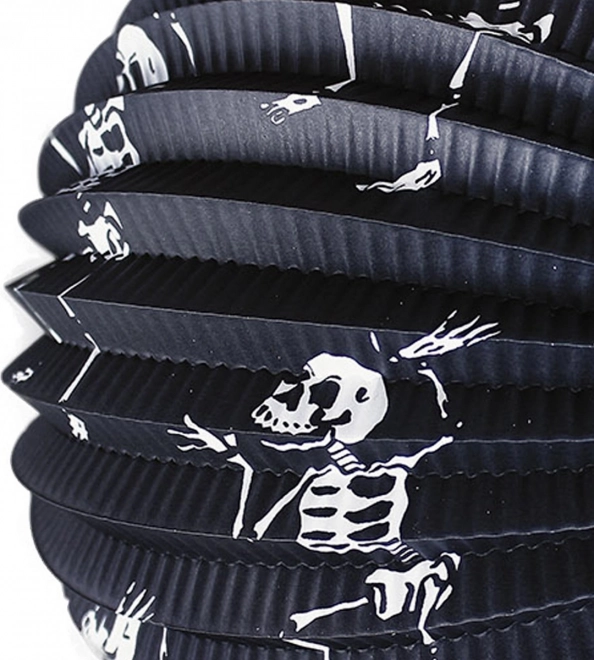 Create an eye-catching Halloween display with a black lantern adorned with a contrasting skeleton motif. Thanks to its foldable construction, it opens and collapses easily, is lightweight, and ready to hang immediately. The package includes a practical 50 cm light-up wand for safe guidance and an impressive light effect during evening parades.