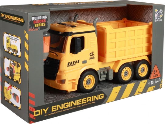 The screw machine tipper in the box is an ideal choice for small construction enthusiasts. Kids will love the opportunity to screw the truck themselves using the included screwdriver, helping with the development of motor skills and problem-solving activities.