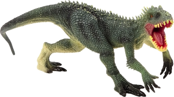 Realistic PVC Giganotosaurus dinosaur figure – green. Durable, detailed, with CE and EN71 certifications. Dimensions 17.5 × 8.5 × 5.5 cm. Age 3+.