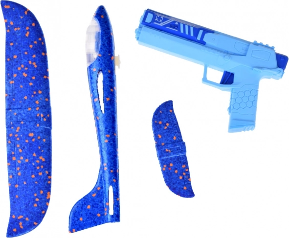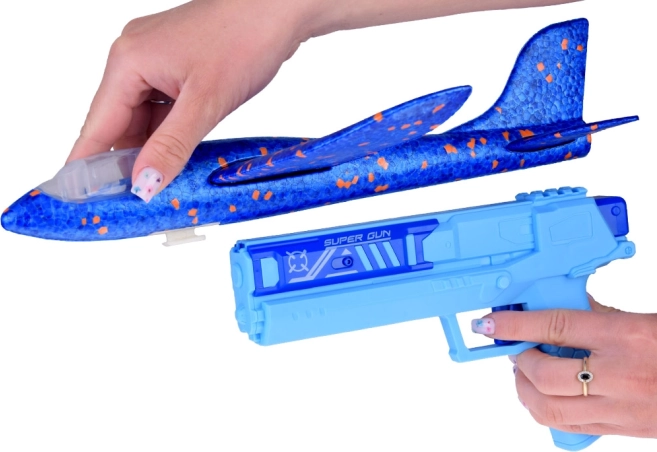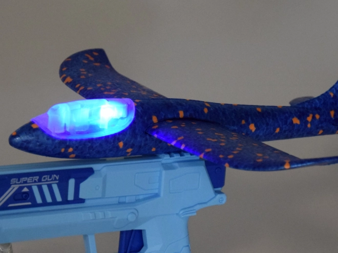 Enjoy safe and easily manageable play with this foam plane, designed to be launched using a practical, ergonomically shaped gun. The plane, made from lightweight polystyrene foam, features LED lights that add visual appeal even during dusk play.