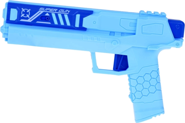 The blue plastic gun is ergonomically designed for easy handling and simple control.