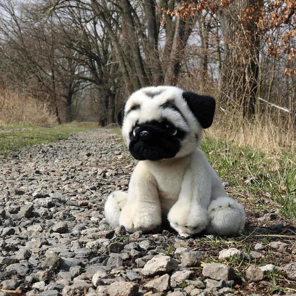 This soft plush pug will delight animal lovers big and small. Lifelike facial details, black ears, and silky fur create a realistic appearance you’ll love at first touch. The toy is sewn with an emphasis on quality and durability to withstand daily cuddles.