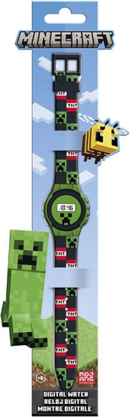 Discover a fun and functional digital watch for young MINECRAFT fans. The clear display helps kids learn to tell time easily, and the Creeper motif on the dial and strap boosts their joy of wearing it every day. The watch is ultra-light (23.3 g) and fits perfectly on a child’s wrist.