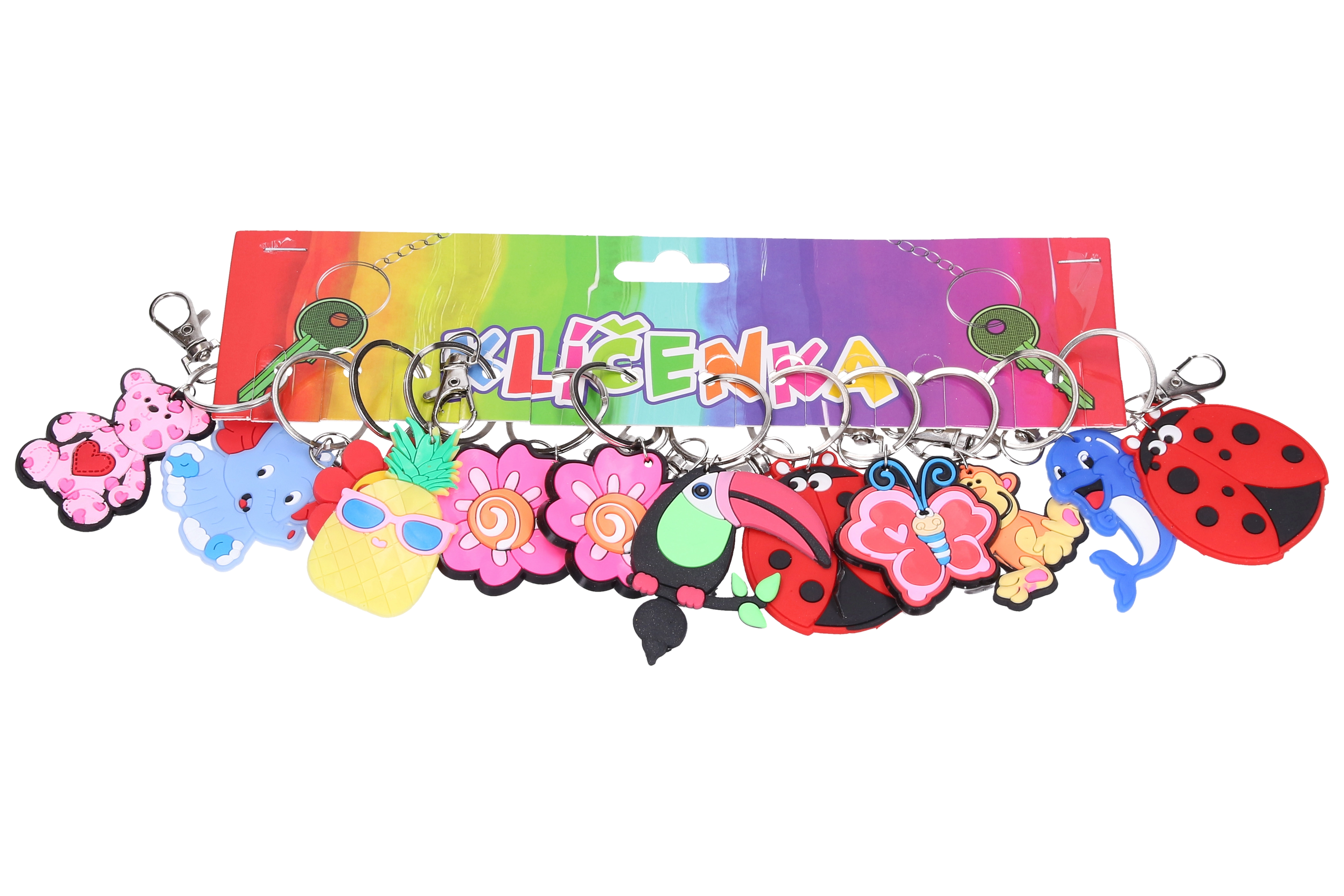 A stylish keychain with a mixed selection of designs for everyday use. A practical accessory for keys, a backpack, or a bag that adds personal style and clarity to your keys.