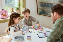 Looking for a gift for a preschooler who loves caring for animals? This set will be the ideal choice. It includes mini doll Gabby and figures of Cat Panda, Baby Cat-a-roo, Meowing Owl, and four Muffin figures. The set also features a swing, slide, train, and a cart shaped like a tin with four seats. Also available is a bath with accessories, including shampoo and a hairbrush. The package includes a bottle, a mug, a storybook, and comfortable beds (including a nest for the Meowing Owl) for relaxing rest. A starter brick is included to facilitate building. Intuitive instructions come in the form of a colorful guide with illustrations and stories.