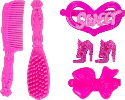 The set includes a pink comb, brush, and other styling accessories that encourage care and creativity during play.