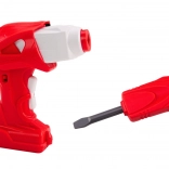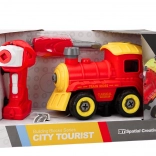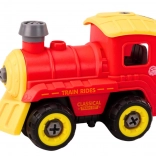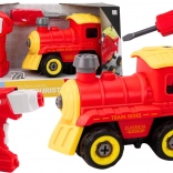 This red-and-yellow take-apart locomotive turns play into a creative workshop — kids build the engine themselves using the screwdriver and can then drive it with a drill that works as a remote controller. Realistic train and engine sounds enhance the ride and inspire imagination.