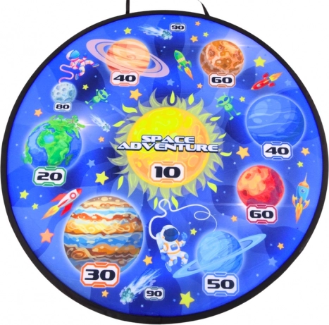 The colorful Space Adventure fabric target with hook-and-loop backing delivers safe play with no sharp tips. Clear scoring zones encourage competition and learning to count.