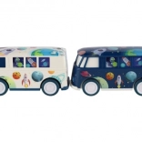 The space plastic wind-up bus is a perfect addition to any little driver's collection. Measuring 13 cm, its lively design will attract any child. It is made from durable plastic and is available in two colors, adding to its appeal. The bus is designed to support children's creativity and imagination through play.