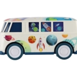 The bus is designed with vibrant colors and space motifs that will captivate every child.