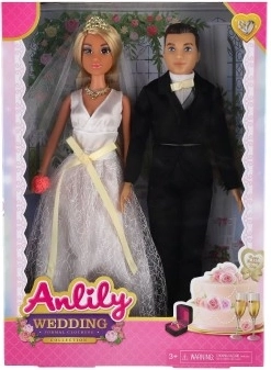 This ANLILY wedding doll set brings romance and style to children's play. The bride shines in a white lace dress with a veil and tiara, and the groom is ready in an elegant black tuxedo with a white shirt and bow tie. Thanks to the durable plastic construction, the dolls are perfect for everyday play.