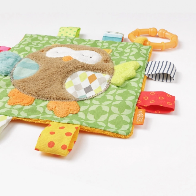 This adorable comforter is made from soft materials that are pleasant to the touch. Thanks to the hanging ring, it can be easily attached to a car seat or stroller, facilitating its use while traveling. The colorful and multi-textured trim provides not only visual and tactile stimulation for the child but also a calming experience.