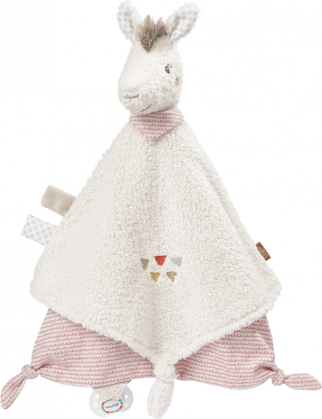A small plush llama provides comfort, warmth, a sense of security, and quickly becomes your child’s best friend. With a sleepy head and knots that invite cuddling, it’s easy for little hands to hold. The cute bear helps your child fall asleep, making it a fast favorite. Thanks to the silicone ring, the cuddle toy can also be attached to a pacifier.