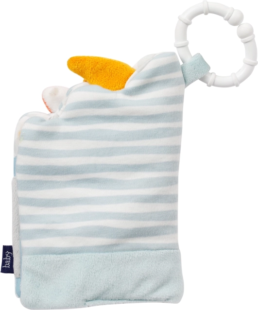 The book made of soft, pleasant velour invites little ones to explore and develop their skills. The six-page fabric book is pleasant to the touch and captures attention especially with its colorful motifs. Inside you’ll find a squeaker, crinkle paper, a mirror, and images made from various colored fabrics.
