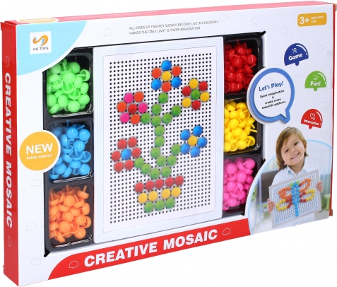Discover the fun creative mosaic that lets kids make their own pictures using multicolored plastic pegs. This toy wonderfully supports fine motor skills, imagination, and color learning. Ideal for children aged 3 and up.