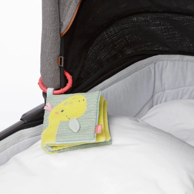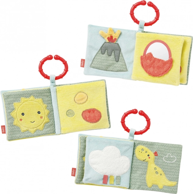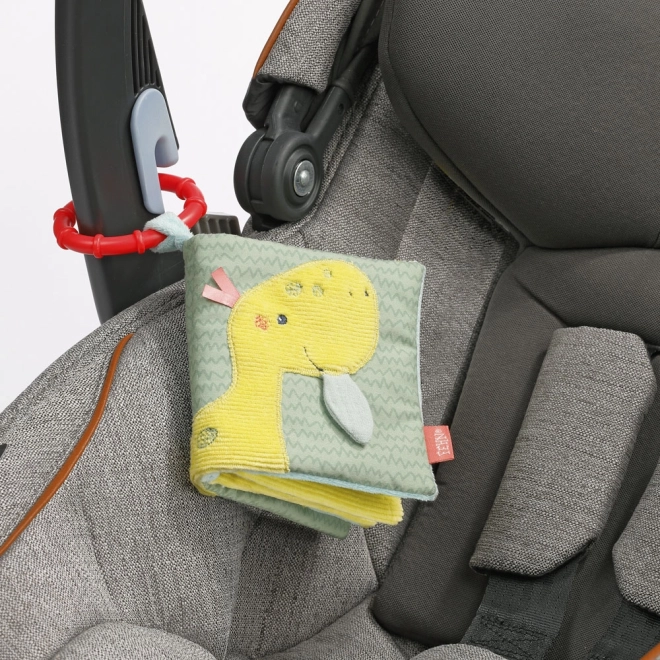 With this soft plush book, children can bring adorable prehistoric creatures to life across 8 pages. Each page features different fun elements such as a squeaker, crinkly paper, plush eggs, and a mirror. The book develops grasp, touch, imagination, and fine motor skills. A practical attachment ring allows easy fastening to a crib, stroller, or car seat.