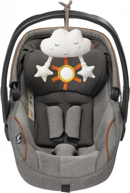 The soft cloud is made from 100% organic cotton and will win a child’s heart in no time. It features plush stars with crinkle paper and a plush sun with a rattle. The dangling elements help develop grasp, touch, fine motor skills, imagination, and coordination. Thanks to the practical loop, the cloud can be easily attached to a crib, stroller, or car seat.
