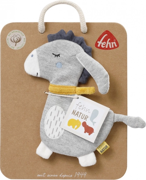 Discover the FehnNatur Knitted Donkey Toy for babies, promoting sensory development and fine motor skills with its crinkly paper and organic cotton design. Perfect for on-the-go fun!