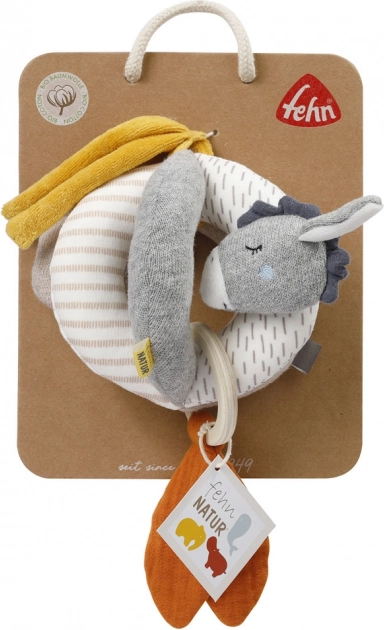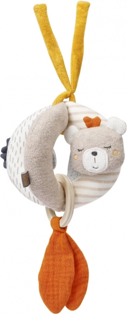 The cute hanging ball is made of 100% organic cotton. It is easy to grasp, supports natural curiosity and fine motor skills in small children. The ball also includes a rattle and a wooden ring to encourage coordination. Thanks to its practical size and hanging ribbons, the ball can be easily attached to a crib, stroller, or car seat, so your child can have it with them at any time.