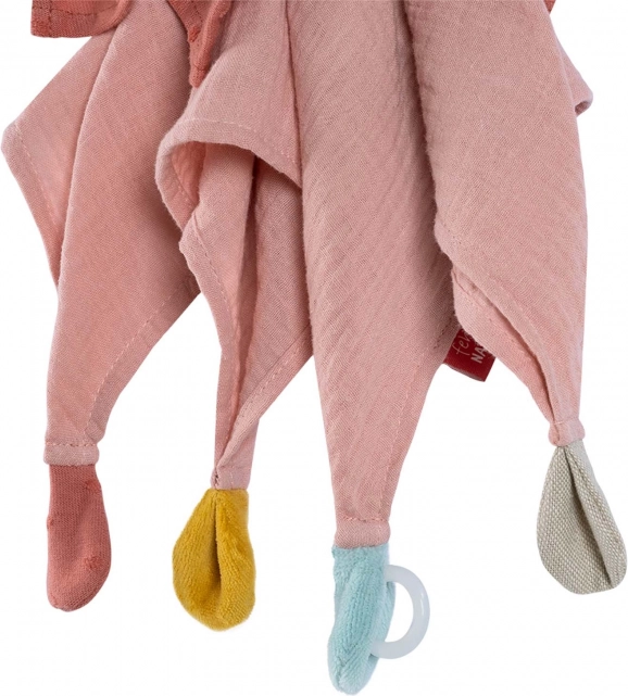 This cuddly toy includes plenty of grabbing elements and soft materials that contribute to the development of the baby's tactile senses. The practical pacifier ring prevents the pacifier from getting lost during play or sleep.