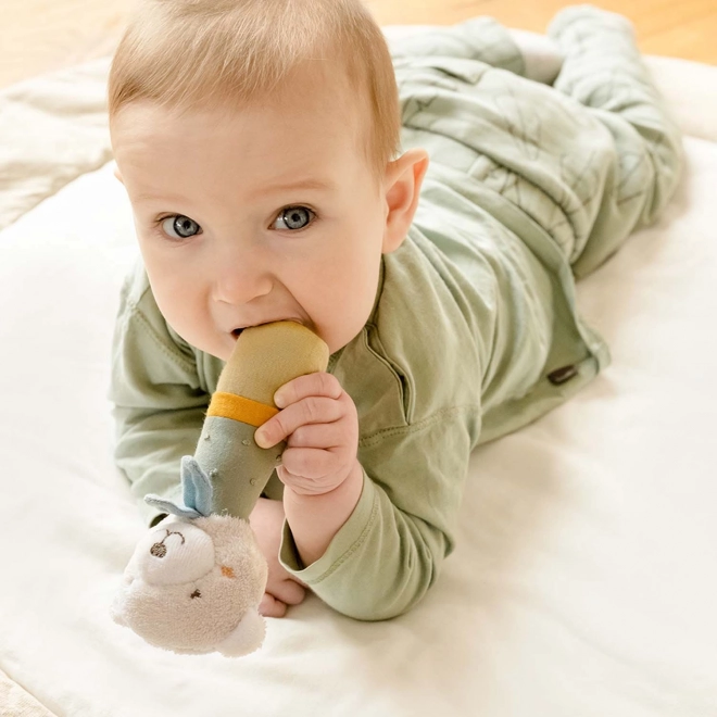 The baby rattle is ideal for grasping and cuddling and is always with your little one, whether in the crib, car seat, or stroller. It supports the child's sense of touch and hearing, as well as motor skills. The pleasant sounds of the rattle capture the baby's attention and can soothe and distract even when something has made them so sad that they started to cry.