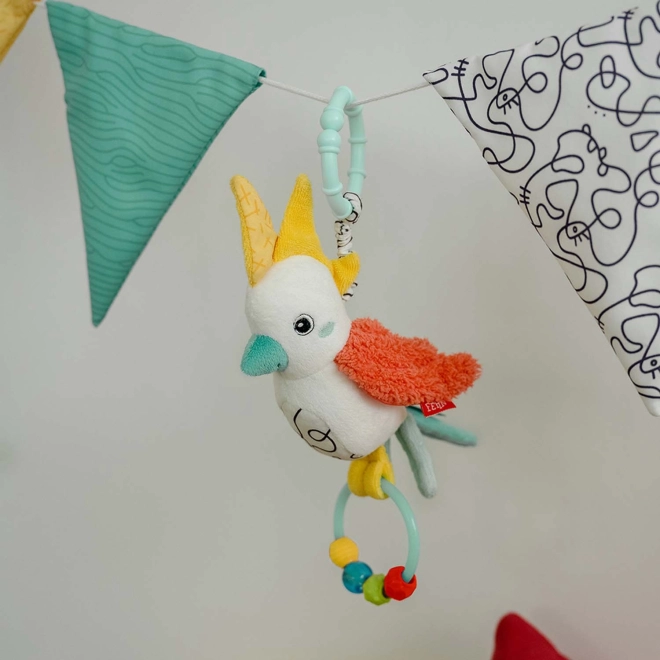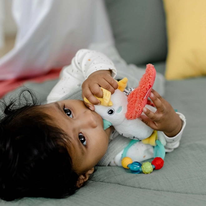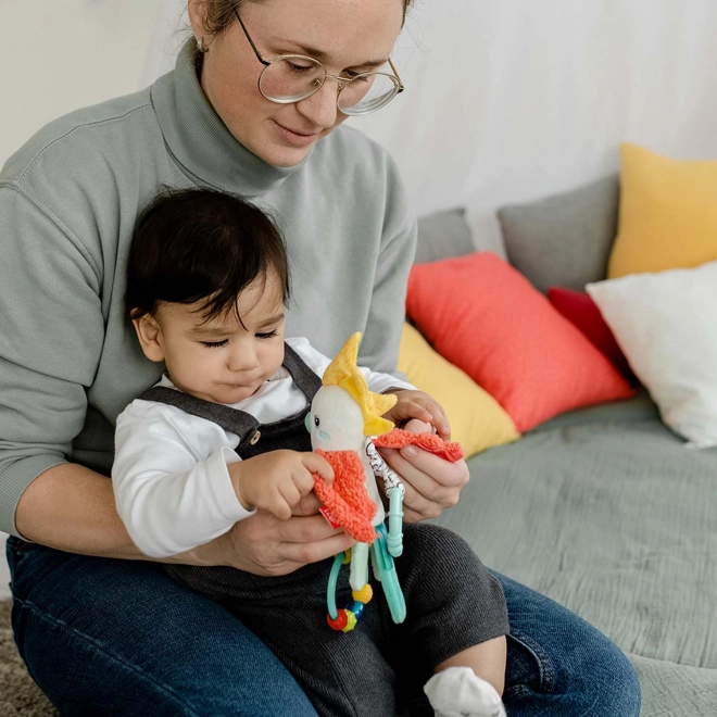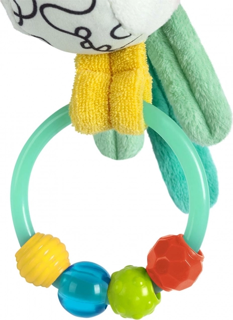 Plush rattle with lots of activity features such as a grasping ring, rattle, squeaker mechanism, and crinkly paper. This grasp toy playfully supports a child’s hearing, vision, touch, healthy grasping, and logical thinking – ideal as a gift for boys and girls for birth, birthdays, or christening.