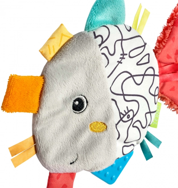Plush rattle with lots of activity features such as crinkle paper, teether, and a mix of materials. The grasping toy playfully supports a child’s hearing, vision, touch, and healthy grasping – ideal as a gift for boys and girls for birth, birthdays, or christening.