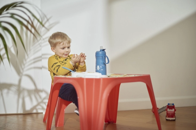 Silicone children's dining set with squirrel motif, 9 pieces, dark blue