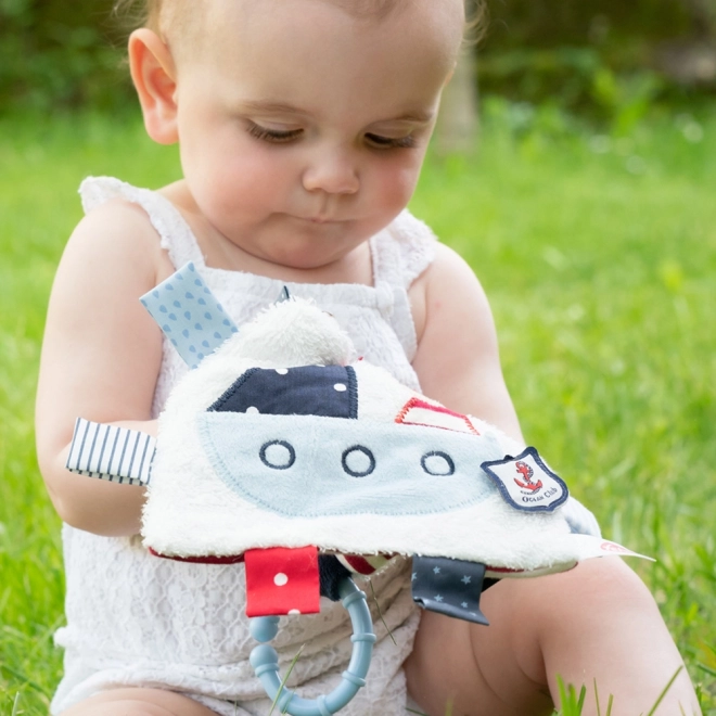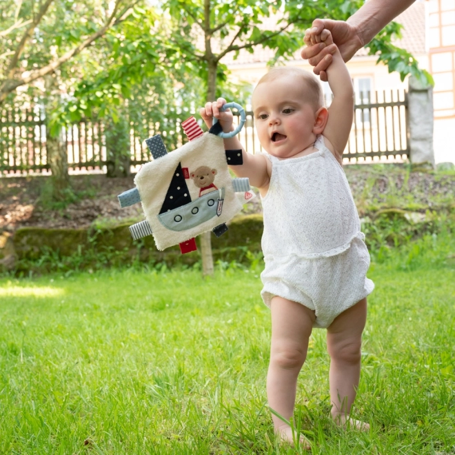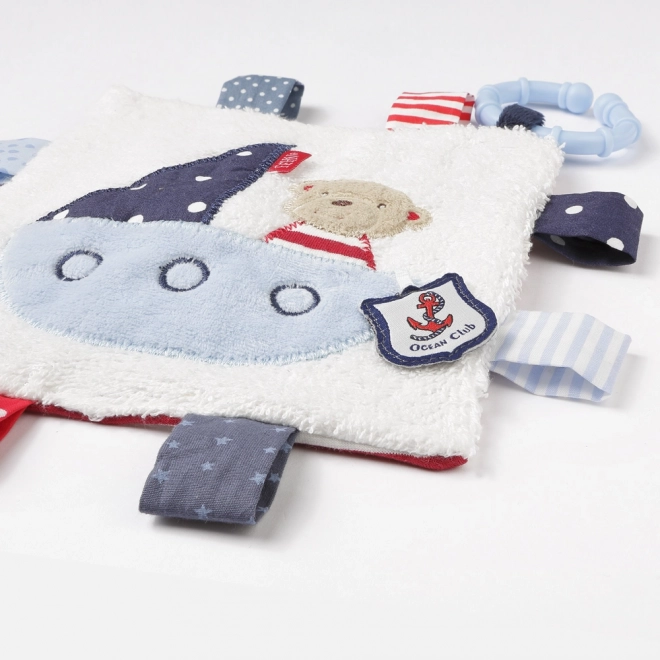 The cuddly snuggle cloth can be easily attached to a stroller, car seat, or crib, making it ideal for home and travel. The nautical design featuring a cute teddy bear in a boat ensures it always brings a smile to your child's face.