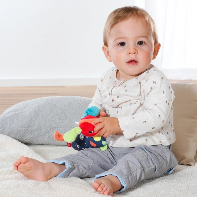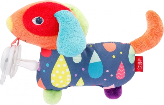 The adorable pacifier toy from the COLOR Friends collection is perfect for little explorers of the world. All practical pacifiers, with or without a handle, can be attached to the silicone ring. The pacifier toy is not only beautiful with its bold colors and patterns, but also super practical. Hidden rattles in the plush puppy support the child's hearing, grasping, and touch, as well as fine motor skills. The colorful grasping dog is ideal as a gift for a birth, christening, or birthday.