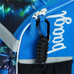 Smart internal organization with a flip-top opening enables quick access to supplies right from the desk. It includes a transparent timetable pocket, an internal organizer with an elastic strap for fixation, an insulated front pocket for snacks, sturdy side pockets for a bottle, a durable base for stability and high-visibility reflective elements for safety. The set is complemented by a single-compartment pencil case with a YKK zipper and a practical drawstring bag with a carabiner and a bottom zip pocket.