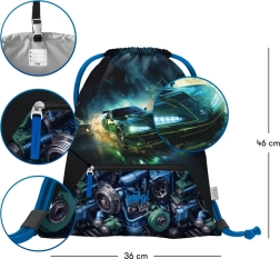 A practical and stylish set with a racing car motif makes every school day easier. The ergonomically shaped satchel with the sliding ERGO ADJUSTABLE SYSTEM precisely follows your child's height, while the adjustable shoulder, chest and side compression straps provide comfort and proper load distribution.