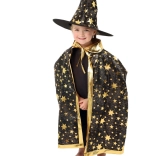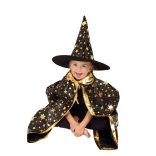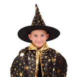 Turn your child into a little magician. This black-and-gold set with a star print includes a standout witch hat and matching cape, perfect for children’s carnivals, costume balls, and Halloween parties. Thanks to lightweight materials, it’s easy to wear and allows free movement during games and performances.