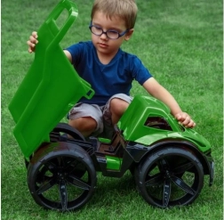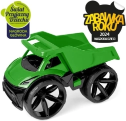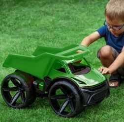 The MAXIMUS dump truck in green stands out with its futuristic look, large matte wheels, and meticulously crafted details. Lightweight yet sturdy, it is easy for smaller children to handle, and thanks to durable plastic it can handle play in the garden, park, and kids' room.