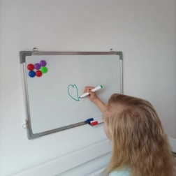The usage of this board is really versatile – from jotting down important notes and creating diagrams to educational purposes such as math or drawing. Thanks to its magnetic function, you can attach important documents to the board using the ten included colored magnets.