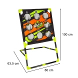 A durable frame with a fabric target is easy to carry and quick to set up. Suitable for indoor and outdoor use.