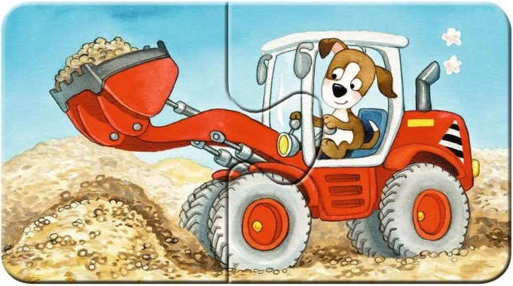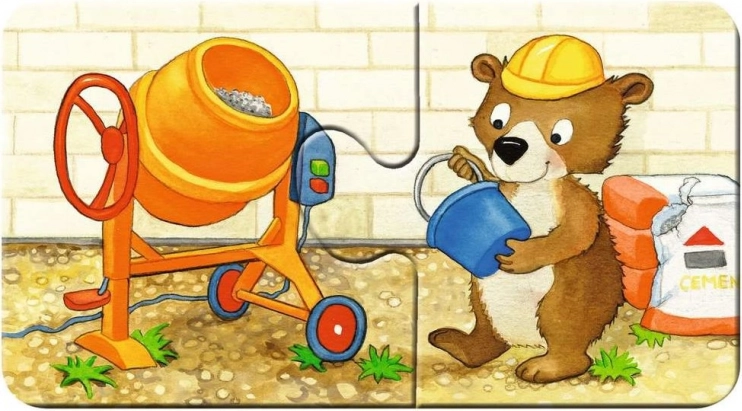Discover a perfect first puzzling experience for the littlest ones with this Ravensburger set. Nine simple two-piece puzzles featuring animals at a construction site help develop fine motor skills, concentration, and imagination. The pieces are made from extra-thick cardboard, making them sturdy, safe, and ideal for small children's hands.