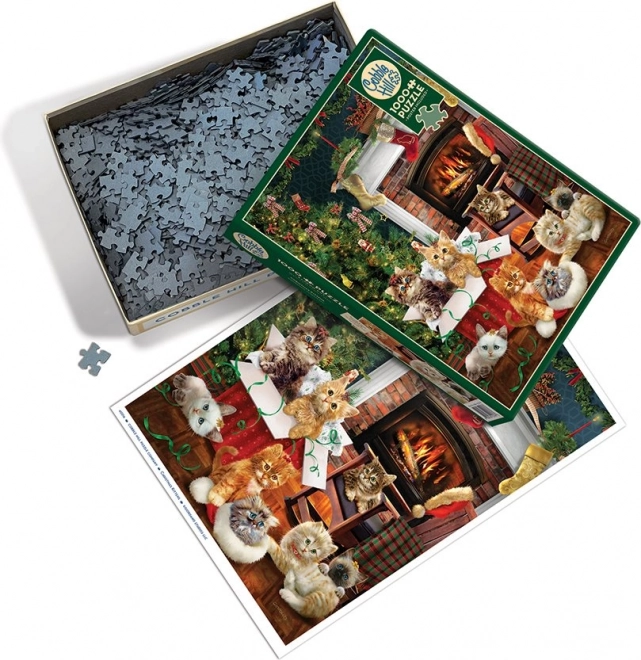Puzzle Christmas Kittens 1000 pieces with irregular shapes for higher difficulty. Poster included. Finished size approx. 48.9 × 67.6 cm.