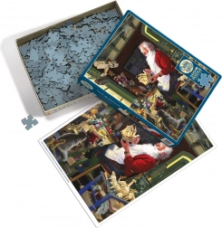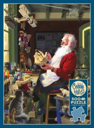 Gain a unique experience with the 'Santa's Workshop' puzzle from Cobble Hill, offering not just fun but a challenge due to its non-segmented die-cut. The original theme depicts an old man painting a ship model in a toy-filled workshop, observed by a cat. Diverse and unusual piece shapes ensure exciting and discovery-filled assembly.