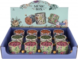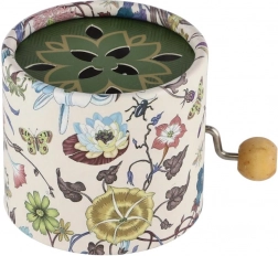 This hand-cranked music box comes in a metal tin with a paper print and floral lid, playing a melody by simply turning the handle. Thanks to its compact dimensions of 9 × 6 × 9 cm, it fits well in the hand and easily slips into a bag or onto a shelf. Ideal for calming moments, sensory development, and as a charming accessory for a child’s room.