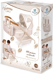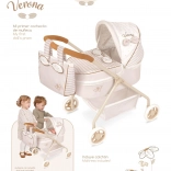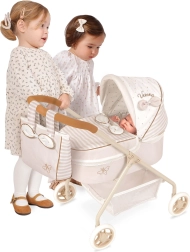 An elegant doll stroller in natural pastel colors offers a lightweight, stable frame, easy handling, and rich accessories including a removable bag, mattress, and lower basket. Ideal for children ages 3+ who love realistic pretend play.